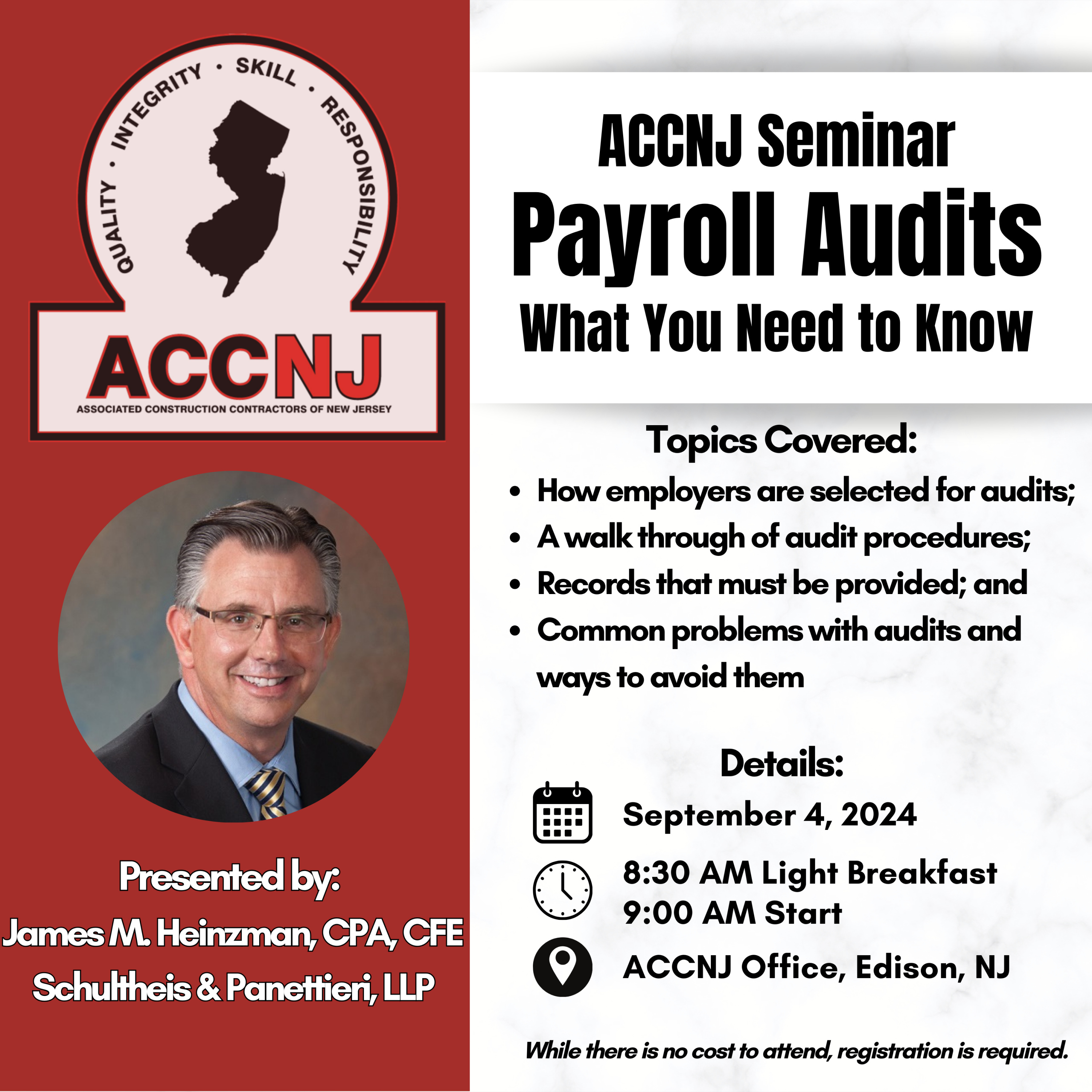 ACCNJ is pleased to host our upcoming seminar, Payroll Audits – What You Need to Know, presented by Schultheis & Panettieri, LLP.