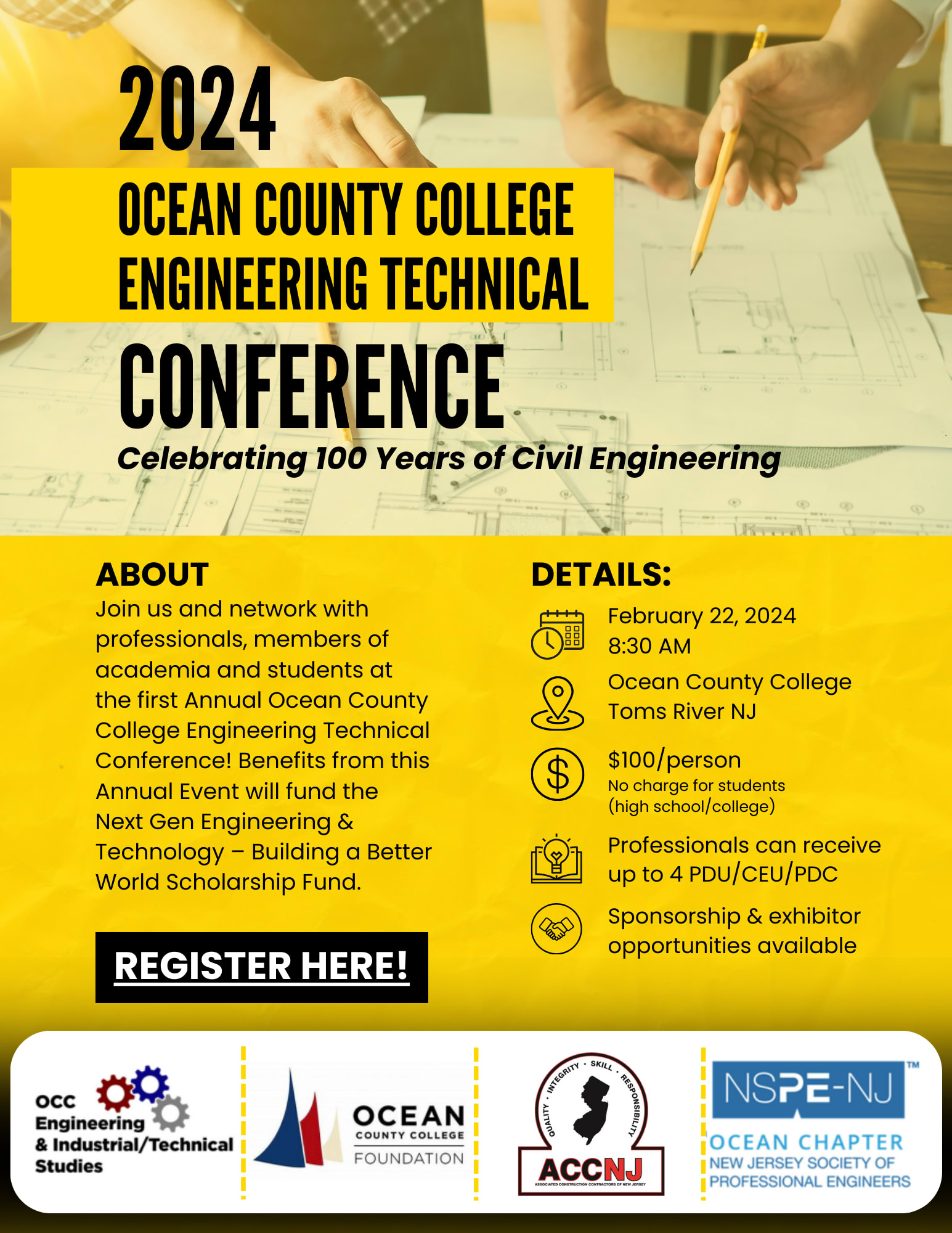 Join us and network with professionals, members of academia and students at the first Annual Ocean County College Engineering Technical Conference! Benefits from this Annual Event will fund the Next Gen Engineering & Technology - Building a Better World Scholarship Fund.
