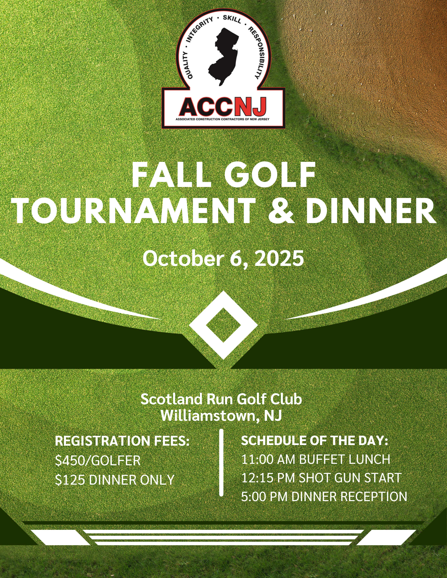 ACCNJ's Fall Golf Outing will be held Monday, October 6, 2025, at a new location for us: Scotland Run Golf Club in Williamstown, NJ.