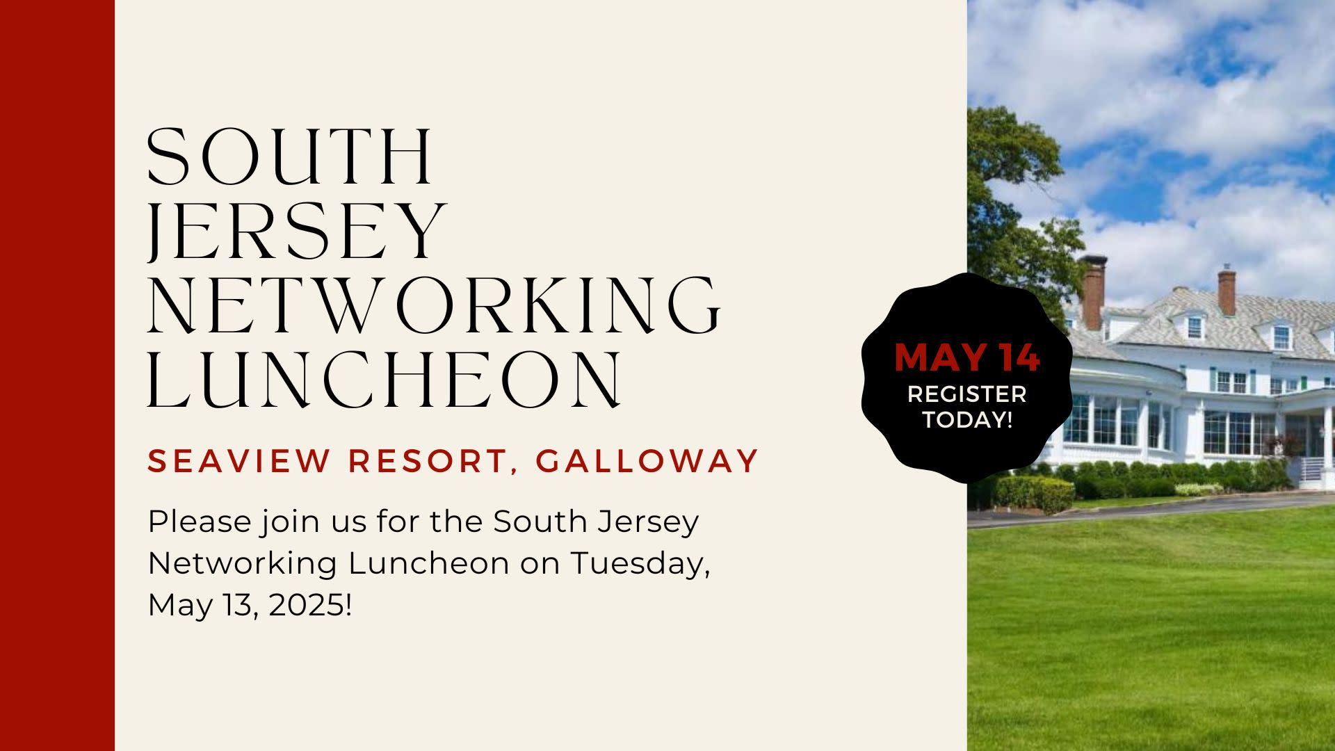 With that said, ACCNJ will be hosting a South Jersey Networking Luncheon on May 13, 2025. Please join us for a relaxed, networking-style event at Seaview Resort in Galloway!